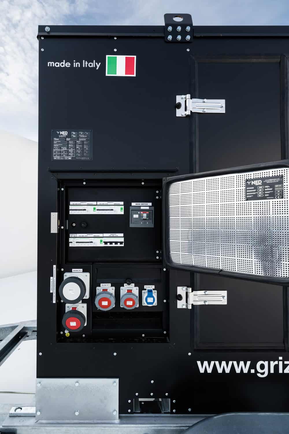 Raccordements : 1 x 63A, 1 x 32A, 1 x 16A, 1 x Schuko
