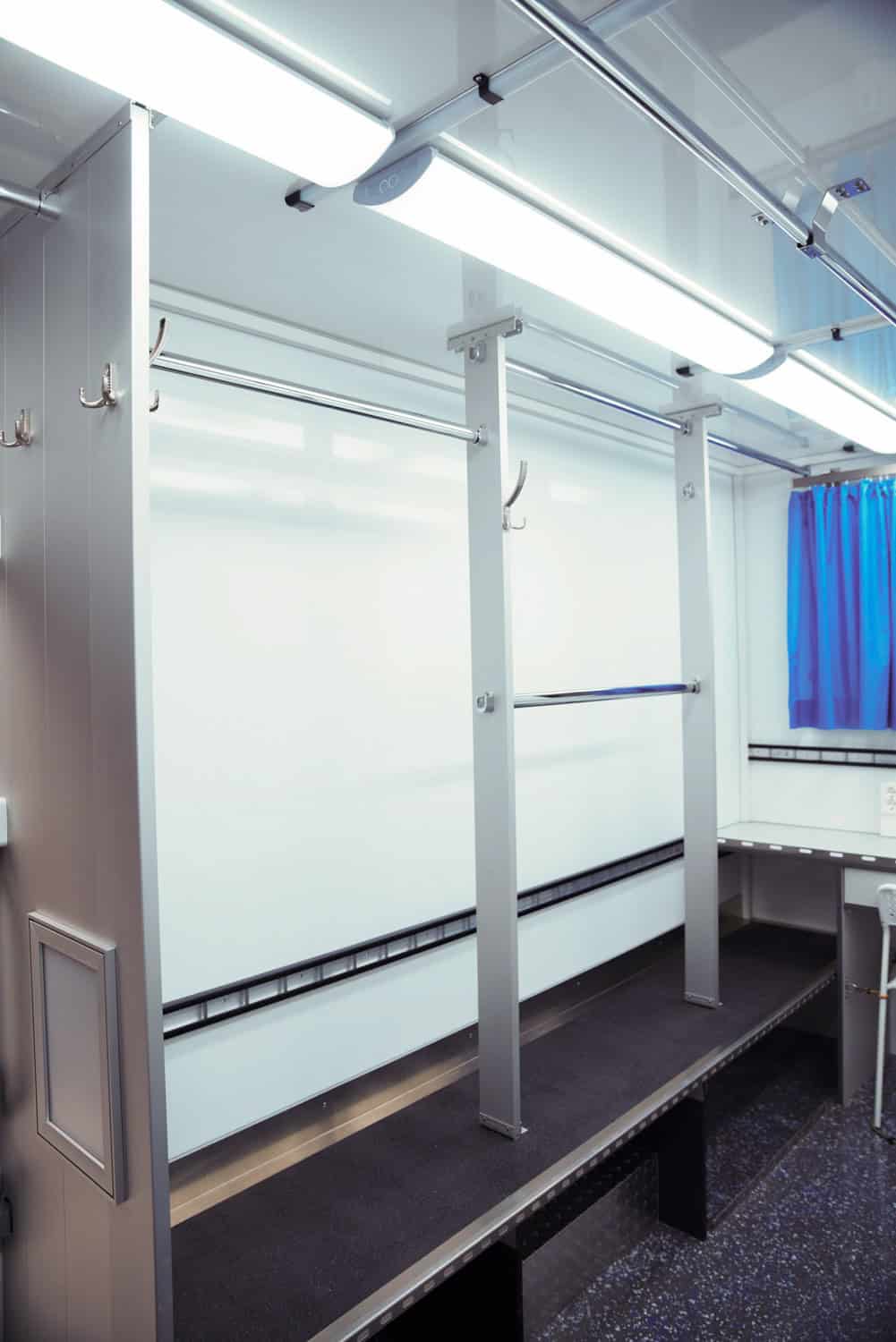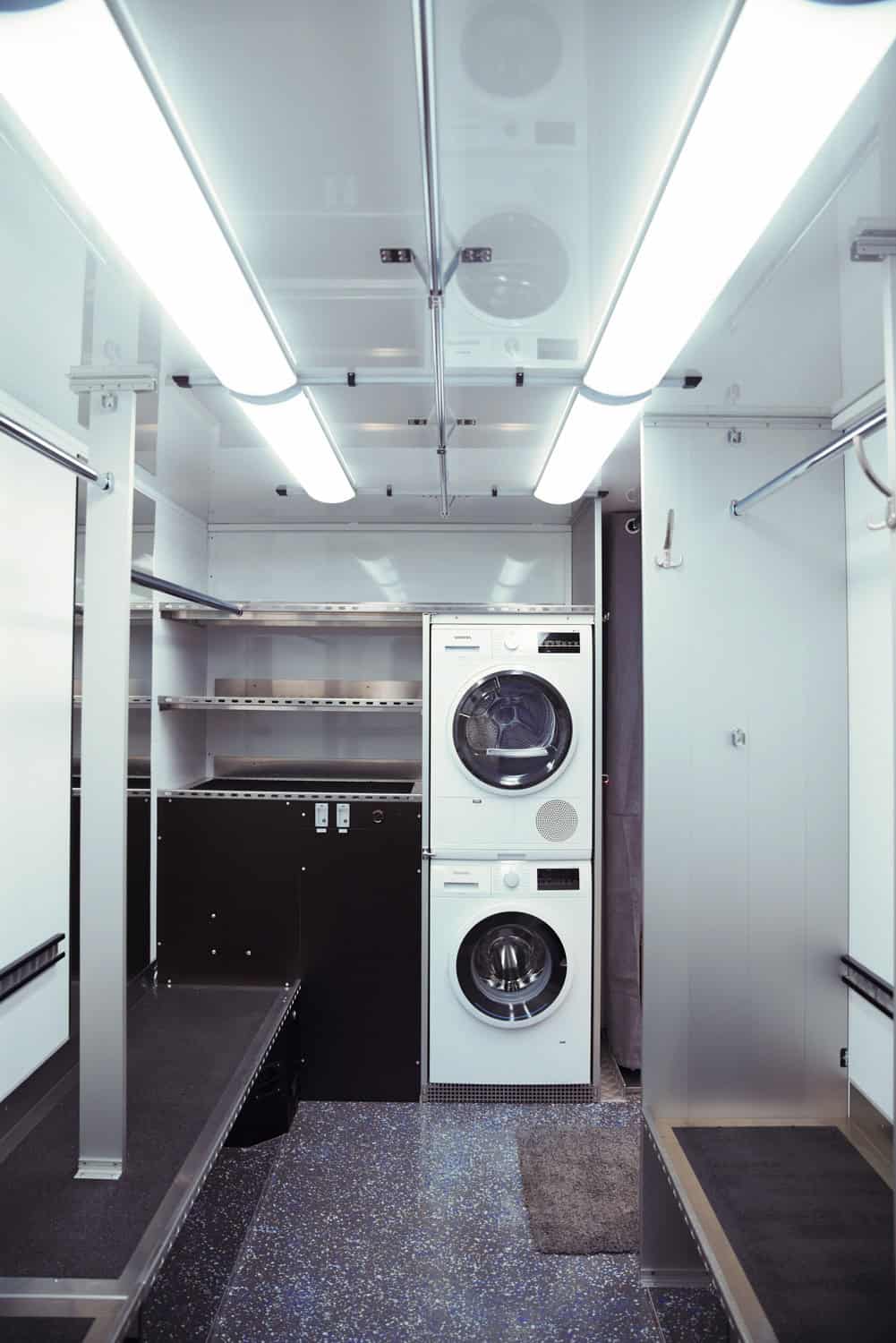 Benötigst du für euer Filmset eine mobile Garderobe vor Ort? Unsere Garderobenmobile verfügen über eine hochwertige Waschmaschine und Trockner. Mit einem permanenten Wasserdruck von ca. 3bar wird eine problemlose Funktion gewährleistet. Zusätzlich wird durch diverse Frostschutzeinrichtungen ein reibungsloser Betrieb bei Frostgefahr ermöglicht.